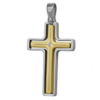 STAINLESS STEEL PENDANT In cross shape with CZ In IPG two tone
