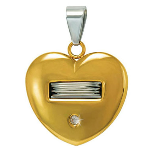 STAINLESS STEEL PENDANT In heart shape with cz and wire In IPG 2 tones