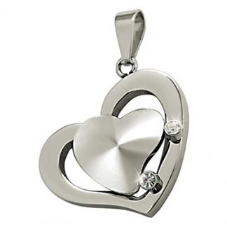 STAINLESS STEEL PENDANT In Heart shape with 2pcs CZ All in stainless steel color