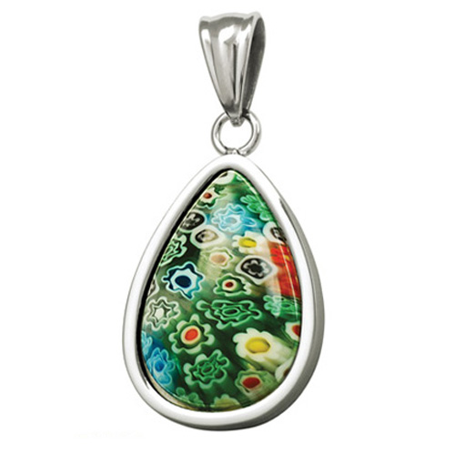 STAINLESS STEEL PENDANT Murano stone in drop shape