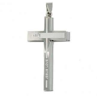STAINLESS STEEL PENDANT In Cross shape with 2pcs cz JESUS LOVE words