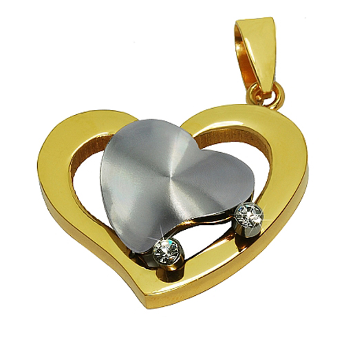 STAINLESS STEEL PENDANT In Heart shape with 2pcs cz In IPG two tone