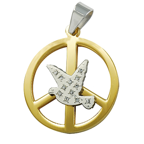 STAINLESS STEEL PENDANT In circle shape with dove with cz In IPG 2 tones