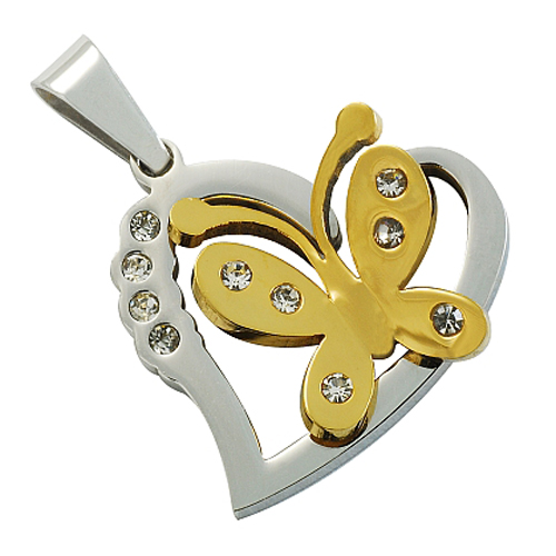 STAINLESS STEEL PENDANT In Heart shape with butterfly with cz In IPG Two tone