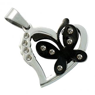 STAINLESS STEEL PENDANT In Heart shape with butterfly with cz In IPB Two tone