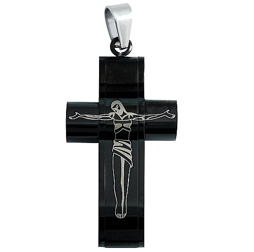 STAINLESS STEEL PENDANT In cross shape with Jesus In IPB or IP rose two tone Or all stainless steel