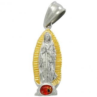 STAINLESS STEEL PENDANT In Mother Mary shape with red stone In IPG two tone