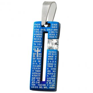 STAINLESS STEEL PENDANT In rectangular shape with cz & cross & Bible verse In IP Blue 2 tones