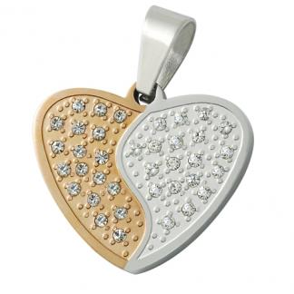 STAINLESS STEEL PENDANT In Heart shape with cz In IP Rose two tone