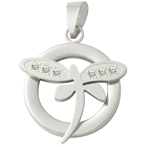 STAINLESS STEEL PENDANT In Round shape with dragonfly with cz In stainless steel color