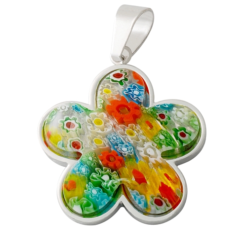 STAINLESS STEEL PENDANT In Flower shape with murano stone