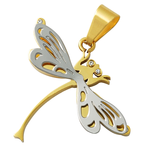 STAINLESS STEEL PENDANT In Dragonfly shape with cz in IPG two tone