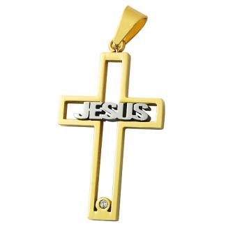 STAINLESS STEEL PENDANT In JESUS cross with cz In IPG two tone