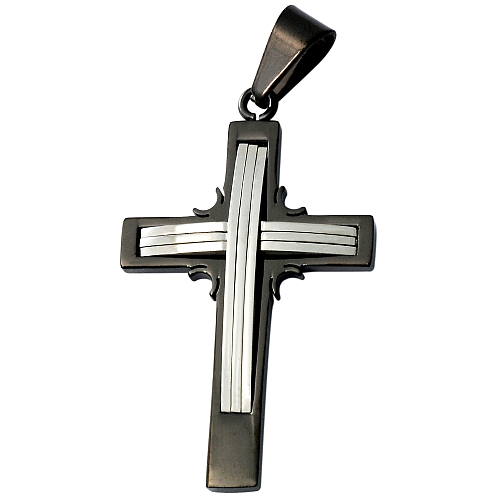 STAINLESS STEEL PENDANT In cross shape In IPB two tone
