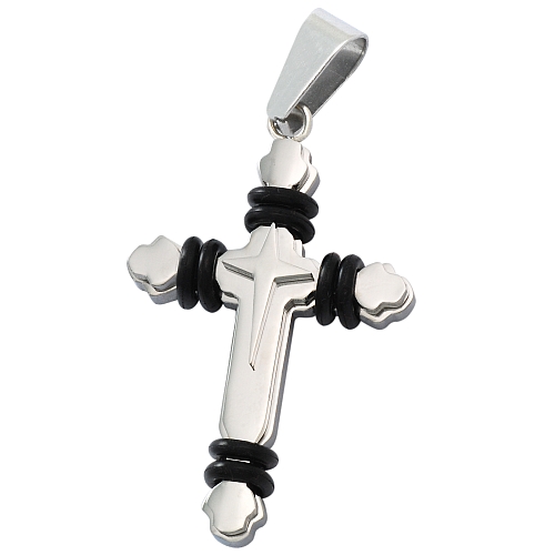 STAINLESS STEEL PENDANT In Cross Shape with PU All in stainless steel color