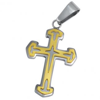 STAINLESS STEEL PENDANT In Cross Shape with cut out pattern on top IPG layer In IPG two tone