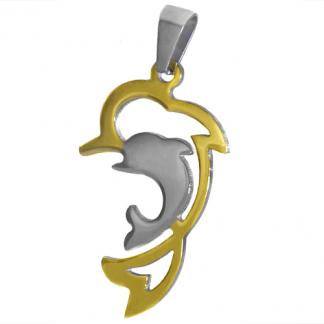 STAINLESS STEEL PENDANT In Two Dolphins shape In IPG two tone