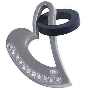 STAINLESS STEEL PENDANT IN HEART SHAPE WITH CZ AND IPB CIRCLE