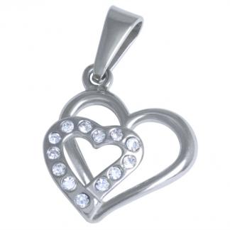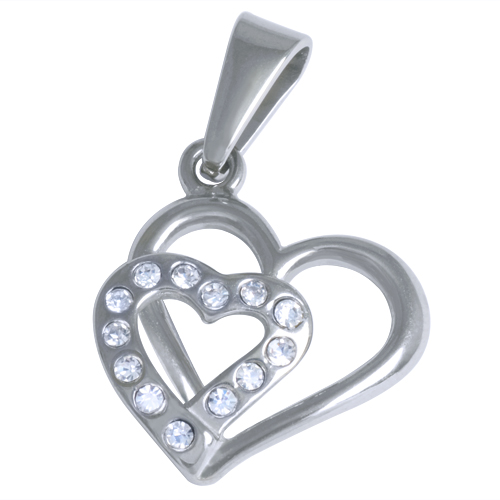 STAINLESS STEEL PENDANT IN HEART SHAPE WITH CZ ALL IN S/S COLOR