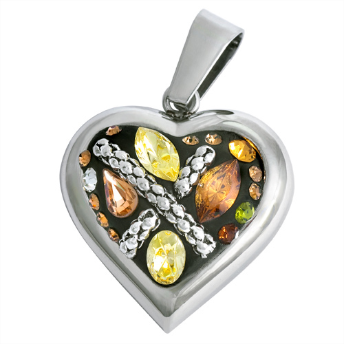STAINLESS STEEL PENDANT IN HEART SHAPE WITH CZ WITH COLOR STONE