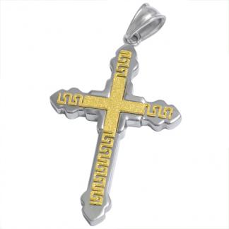 STAINLESS STEEL PENDANT IN CROSS SHAPE WITH SANDBLAST IN IPG 2 TONE