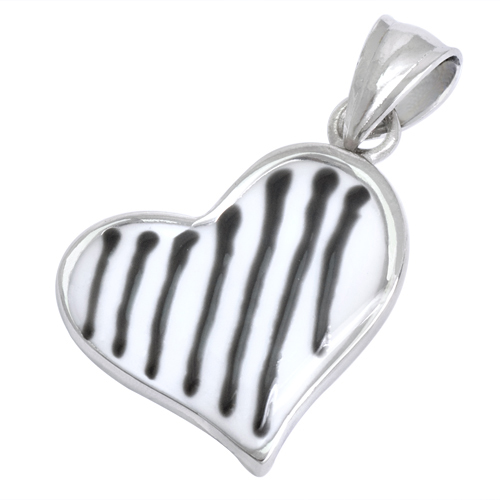 STAINLESS STEEL PENDANT IN HEART SHAPE WITH WHITE AND BLACK COLOR