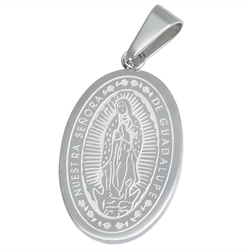 STAINLESS STEEL PENDANT IN OVAL SHAPE WITH CZ WITH GUADALUPE ALL IN S/S COLOR