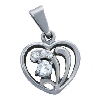STAINLESS STEEL PENDANT IN HEART SHAPE WITH CZ ALL IN S/S COLOR