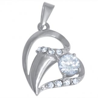 STAINLESS STEEL PENDANT IN HEART SHAPE WITH CZ ALL IN S/S COLOR