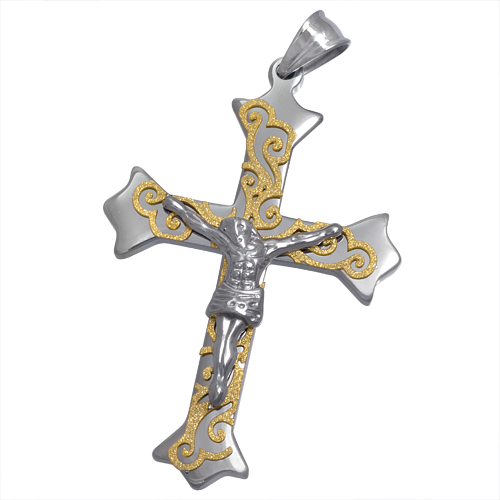 STAINLESS STEEL PENDANT IN CROSS SHAPE WITH SANDBLAST IN IPG 2 TONE
