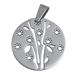 STAINLESS STEEL PENDANT IN CIRCLE SHAPE ALL IN S/S COLOR WITH FLOWER CUTOUT