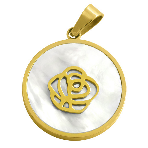 STAINLESS STEEL PENDANT IN CIRCLE SHAPE WITH SHELL WITH ROSE IN IPG COLOR