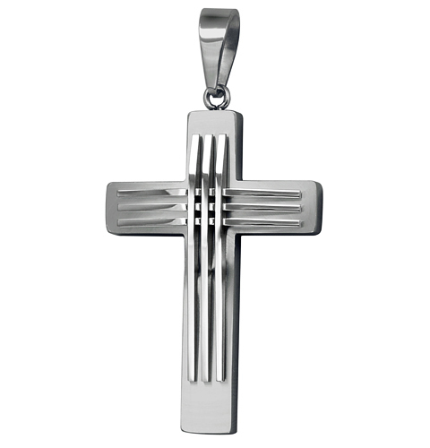 STAINLESS STEEL PENDANT IN CROSS SHAPE WITH 3 STRIPS ALL IN S/S COLOR