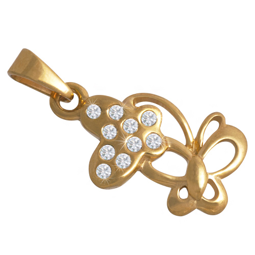STAINLESS STEEL PENDANT WITH TWO BUTTERFLIES ALL IN IPG WITH 10 CZ