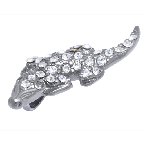 STAINLESS STEEL PENDANT IN CROCODILE SHAPE WITH CZ ALL IN S/S COLOR