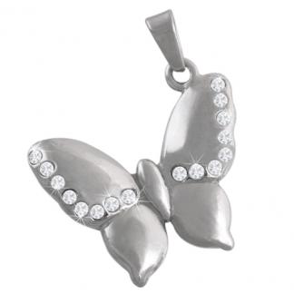 STAINLESS STEEL PENDANT IN BUTTERFLY SHAPE WITH CZ ALL IN S/S COLOR