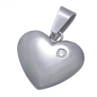 STAINLESS STEEL PENDANT IN HEART SHAPE WITH ONE CZ ALL IN S/S COLOR