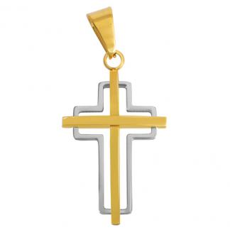 STAINLESS STEEL CROSS PENDANT IN IPG TWO TONE WITH 2 CROSS