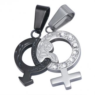 STAINLESS STEEL PENDNAT WITH MALE & FEMALE SIGN WITH ROSE PATTERN WITH 7 CZ IN IP BLACK TWO TONE