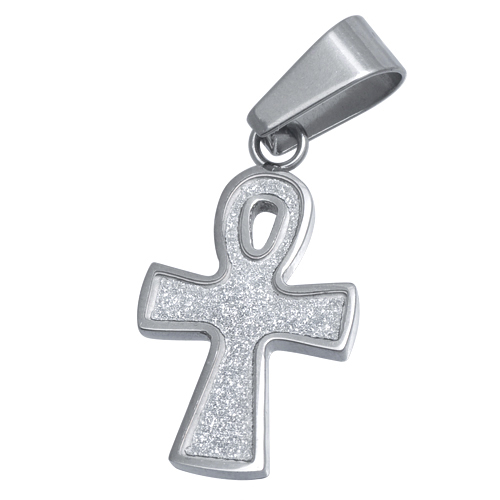 STAINLESS STEEL PENDANT IN EGYPTIAN STYLE CROSS SHAPE ALL IN STEEL COLOR WITH SANDBLAST