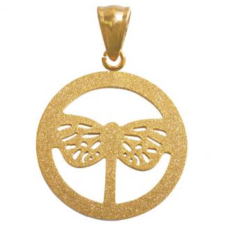 STAINLESS STEEL ROUND PENDANT WITH DRAGONFLY WITH SANDBLAST ALL IN IPG