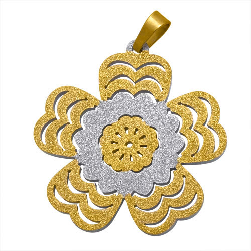STAINLESS STEEL PENDANTIN FLOWER SHAPE IN IPG TWO TONE WITH SANDBLAST