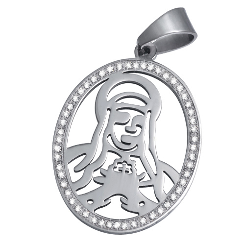 STAINLESS STEEL RELIGIOUS PENDANT IN OVAL SHAPE WITH CZ ALL IN STEEL COLOR
