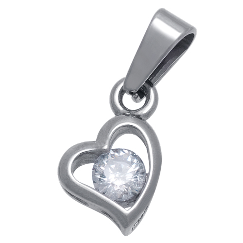 STAINLESS STEEL PENDANT IN HEART SHAPE WITH 1 CZ ALL IN STEEL COLOR