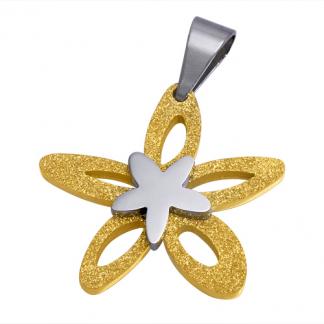 STAINLESS STEEL PENDANT IN FLOWER SHAPE IN IPG TWO TONE WITH SANDBLAST