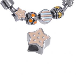 STAINLESS STEEL PENDANT PANDORA BEAD IN STAR SHAPE WITH PINK ENAMEL