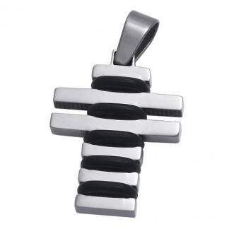 STAINLESS STEEL CROSS PENDANT IN STRIP DESIGN 20WITH PU