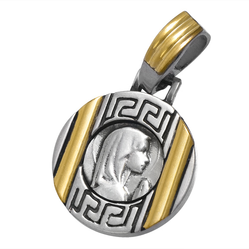 STAINLESS STEEL RELIGIOUS PENDANT WITH VIRGIN MARY WITH BLACK COLOR IN IPG TWO TONE
