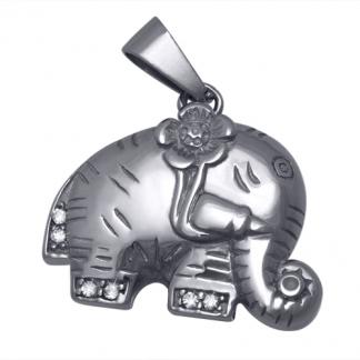 STAINLESS STEEL ELEPHANT PENDANT WITH 6 CZ ALL IN STEEL COLOR