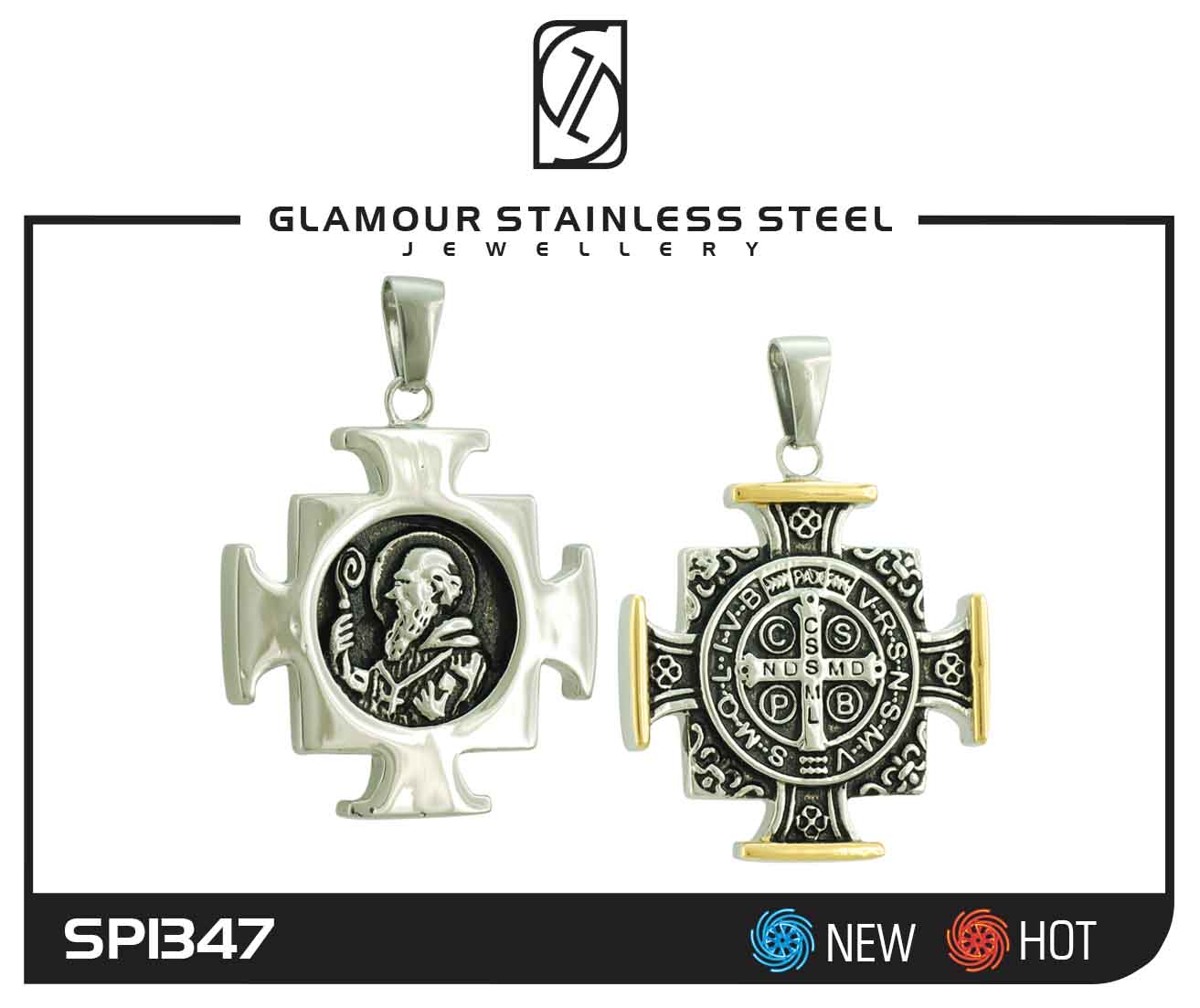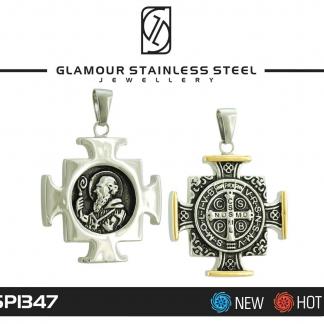 STAINLESS STEEL RELIGIOUS PENDANT WITH SAN BENITO WITH BLACK COLOR IN IPG TWO TONE